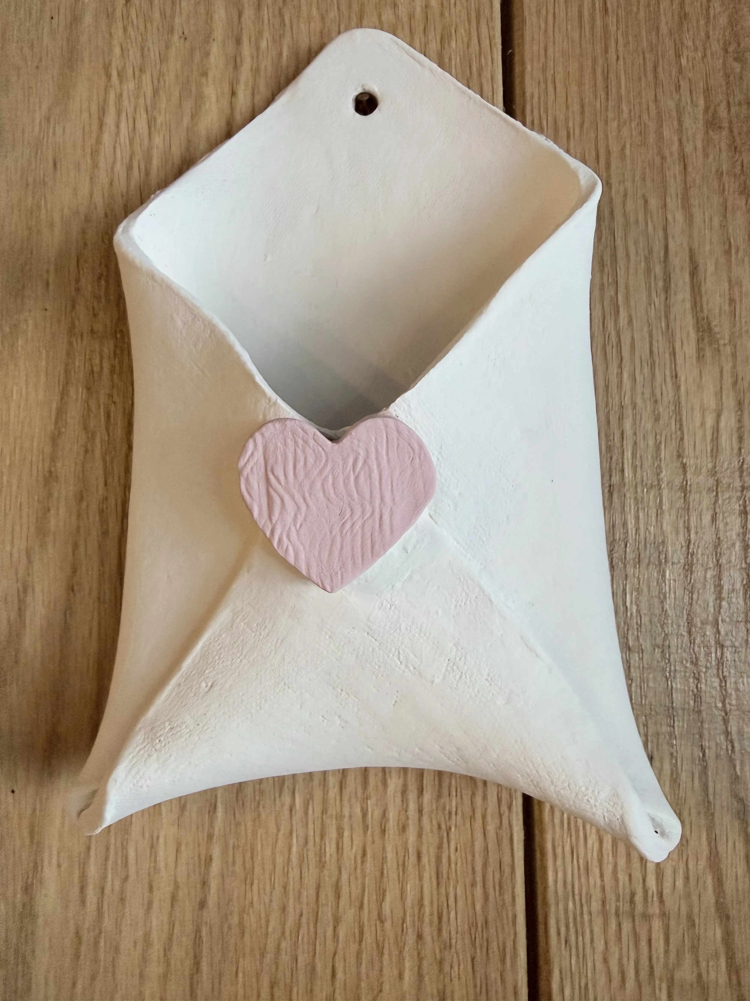 If you have too many bills (say us all), you can make a ceramic wall-hanging heart envelope in place of a mug. This adorable, wall-hanging envelope is meant to hold love letters (we wish), overdue bills, or whatever pieces of life need a special place to land in our home. This envelope is more than an object—it’s a little container for intention, holding space for both affection and real life. 💌